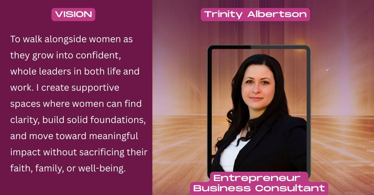 Trinity Albertson is an educator, Army veteran, and mentor with a doctorate in Educational Leadership and an MBA. With 15+ years in healthcare, education, and business systems, she now focuses on serving women through coaching and community. Trinity helps women grow into confident, whole leaders and build lives and work that align with their values, family, and purpose.