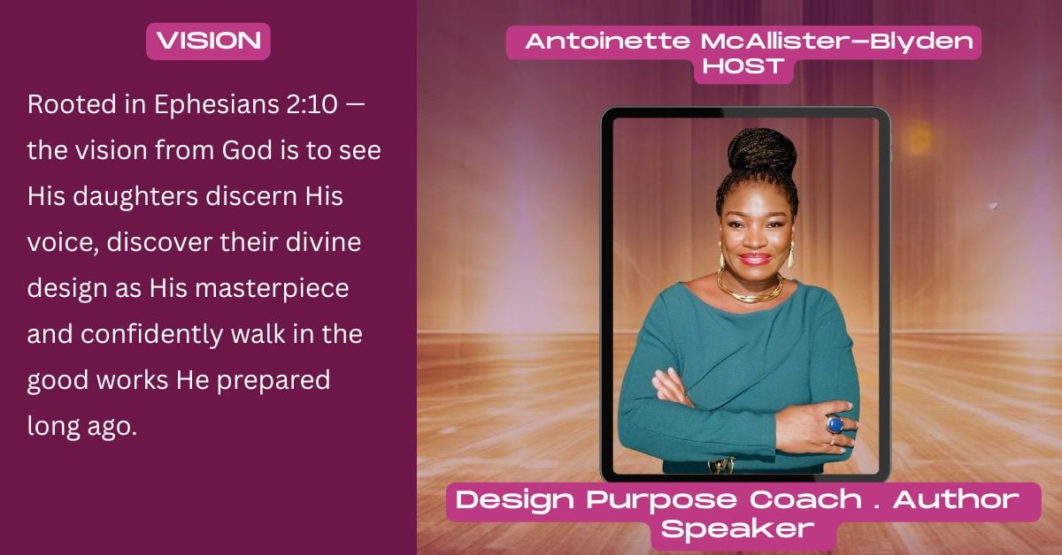 Antoinette believes that we all have a unique design that we have been called to live based on how God has made us and works through us. Her heart has always been inclined towards helping others unearth and live out that unique design and God's purpose for their lives. As a result, she pursued the path of Christian Life Coaching. Antoinette desire to witness God's daughters complete their assignment and live out God's purpose in every role or sphere to which they are called for the glory of God.